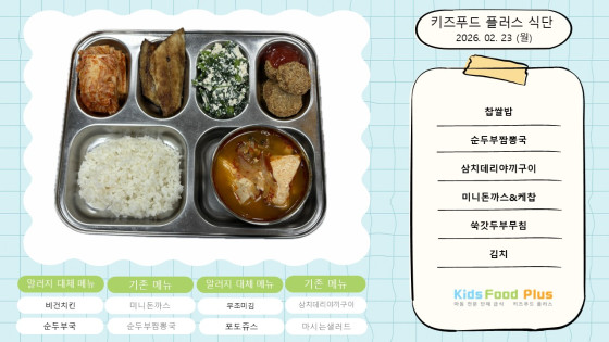 2026년 2월 23일 ~ 27일 식단 안내