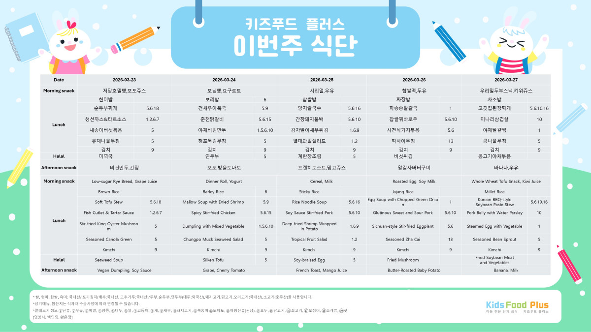 2026년 3월 23일 ~ 27일 식단 안내 페이지 정보 목록 본문 2026년 3월 23일 ~ 27일 식단 안내 이전글2026년 3월 23일 월요일 26.03.23 다음글2026년 3월 20일 금요일 26.03.20 댓글 0 댓글목록 등록된 댓글이 없습니다.