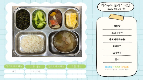 2026년 3월 30일 ~ 4월 3일 식단 안내